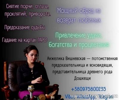 Помощь сильнейшей ясновидящей Анжелики Вишневской в Киеве. Снять порчу в Киеве. Эзотерик Киев. Помощь мага в Киеве. Гадалка Киев. Таролог Киев. Ясновидящая Киев. Экстрасенс Киев.